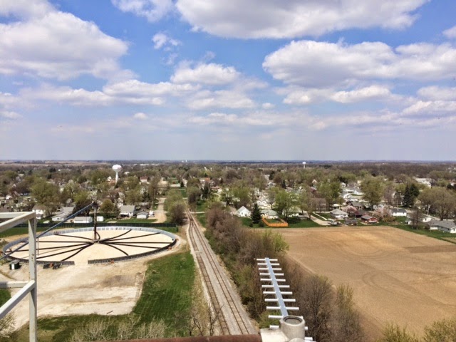 I’ve installed the first of what I hope are many AREDN (Amateur Radio Emergency Data Network) mesh nodes. This site is located on a large grain elevator in Heyworth, IL. It’s at the 150 foot level, with two yagi antennas. One antenna is pointed north towards Bloomington, and the other is pointed northeast.