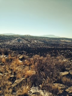 The Sierra De Las Valles Range, west of Santa Fe, feature many peaks in the mid 7,000's. The range is located in the Caja del Rio (Spanish: "box of the river"). Caja Del Rio is a dissected plateau, of volcanic origin, which covers approximately 84,000 acres of land in northern Santa Fe County, New Mexico. The drainage from this region empties into the Rio Grande River. The center of the area is approximately 15 miles west of Santa Fe. Most of the Caja is owned by the U. S. Forest Service and managed by the Santa Fe National Forest. Access is through New Mexico Highway 599, Santa Fe County Road 62, and Forest Service Road 24.