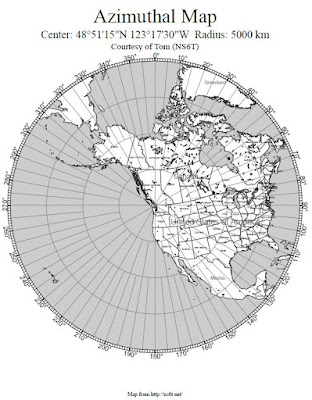 I can highly recommend the ns6t map generator as it produces a very nice great circle map, shown below for my location on Mayne Island.