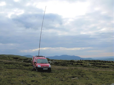 In early June I loaded up the van with all the gear and headed off for the mountain above Redcastle, County Donegal. Using a narrow track and climbing higher, to about 270 meters, a place was found leading to an old quarry. Typically, it had started to rain. By the time I had erected the support pole, pulled out and secured the top hat wires using light nylon line and deployed the radial wires around and below the vertical drop wire, my trouser ends were very wet!