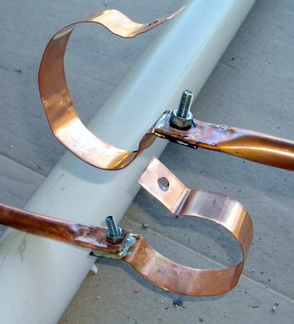 Home made cap clamps. The clamps are soldered to keep the contact resistance low.