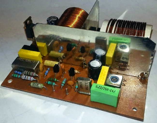 At 13.2VDC, an output of 19-22W is claimed from the single FET final amplifier. Full details can be viewed here.