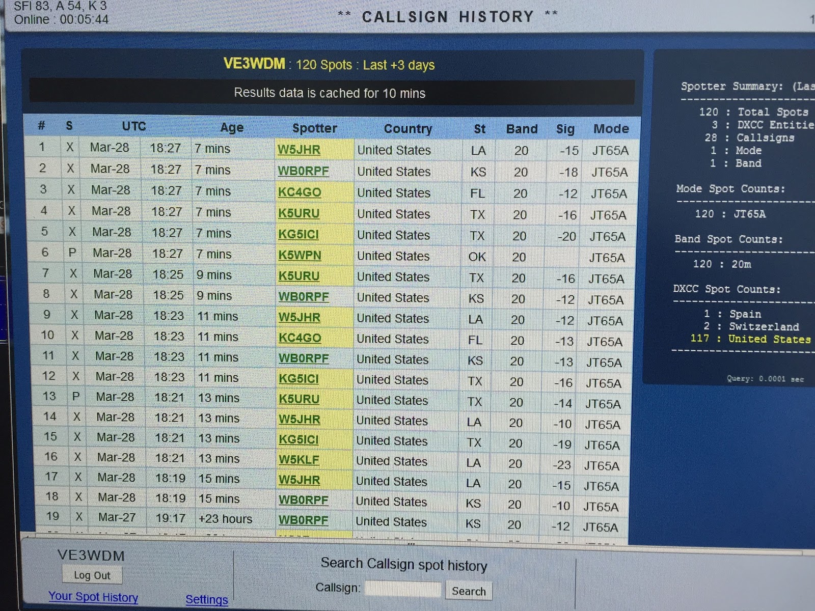 | A decent showing on 20m JT-65 |