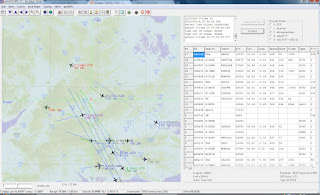 I was doing this at around 10pm at night with a few less planes flying, but I moved the antenna close to the window of the lounge on the ground floor and was soon seeing points plotted from the planes at surprising distances from home. Having got it all setup, I transported the laptop and the dongle upstairs to the shack, which has an easterly facing window and set it up. Range seems to be regularly 50-60 miles with occasional greater distances.