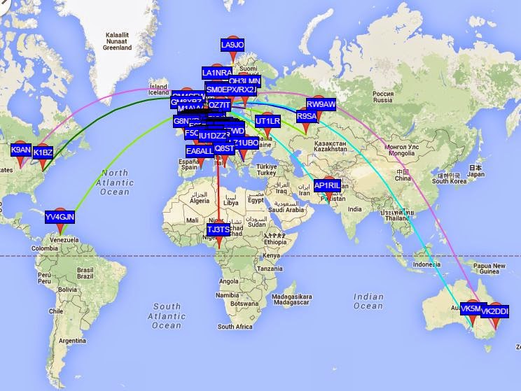 For me South America, Australia, and Africa are quite rare on WSPR. But they all heard my tiny 0.2 W signal the night between 31 March and 1 April in addition to North America, Asia and Europe. That’s a new one for me and worthy a brag post on the blog, I think! Hopefully, it may also inspire others to try low power WSPR.