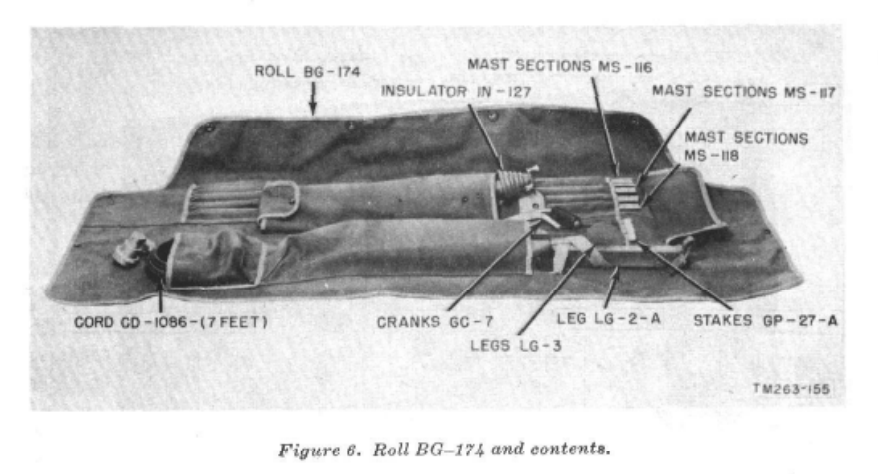 The AN/GRC-9 comes with 3 antenna systems; a multiple section, whip vertical for quick field setup and mobile use, a long wire that can be quickly deployed in a fixed station as a sloper, and a doublet for best reception, transmission in a fixed location.