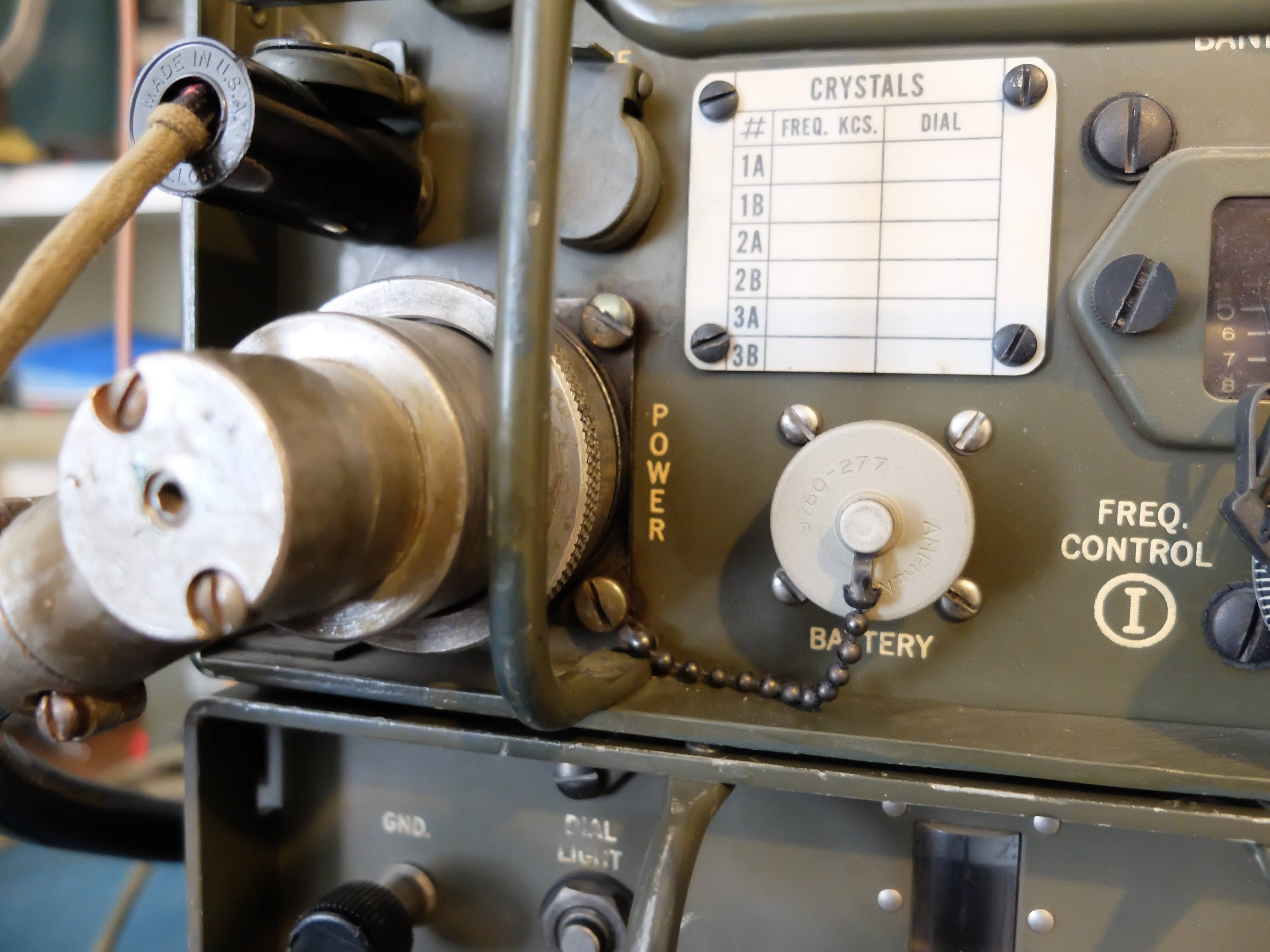 Designed to be used in the field, both vehicle mounted and carried by mobile infantry; there were a number of ways to supply power to the unit. There were a few different Vibrator/Dynamotor units, that could operate from common DC voltages of the time (6v, 12v, 24v) as well as a hand cranked, field portable generator.