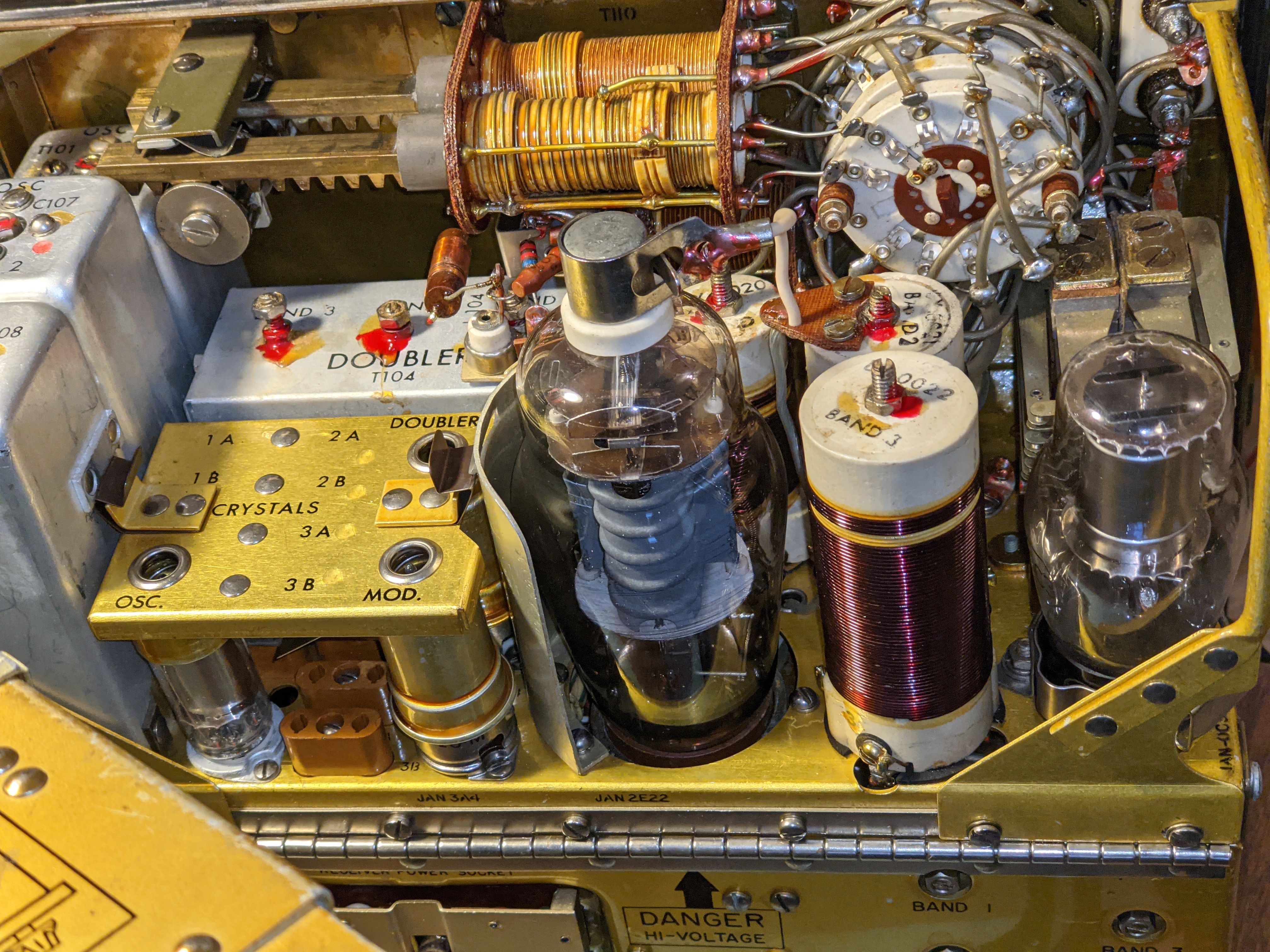 The receiver's tuning knob also is very coarse, in that fine adjustments are made by breathing on the knob. However it has zero backlash, which is amazing in a piece of equipment this old. The markings on the receiver are in 50 kHz intervals so the only way to really figure out where you are is to look at RBN for your spot.