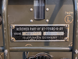 These radios seemed to have been more plentiful in the surplus market 10 - 20 years ago. Now you'll occasionally see one come up on eBay or other sites, but often times they are in very rough shape or the they are foreign language versions. I bid on a few auctions over the past couple of years and the bidding always exceeded my threshold for what I thought it was worth. The one above was part of an auction from an individual who had actually trained on these units prior to deploying to Vietnam. Later in life he became interested in finding one and spent time in military surplus warehouses going through pallets of equipment to find one in good shape. This particular unit is made up of a Lewt manufactured transmitter and a Telefunken receiver. The original owner preferred the receiver characteristics of the Telefunken over the Lewt manufactured model, so he paired the two.
