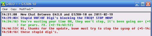 I like to think APRS is a haven from the aggravation often found on the rest of the bands, but unfortunately we have our problems too. This afternoon an APRS message appeared on my screen from G1ZRN-10 that clearly had been addressed to ALL.