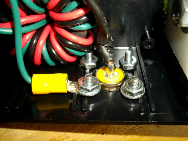 There is not a ‘whole lot’ of room inside this power supply, but more than in some I’ve seen. None the less, I opted to remove the internal components to allow a good solder job from the Power Poles to the original binding posts. I covered the splices with heat shrink tubing.