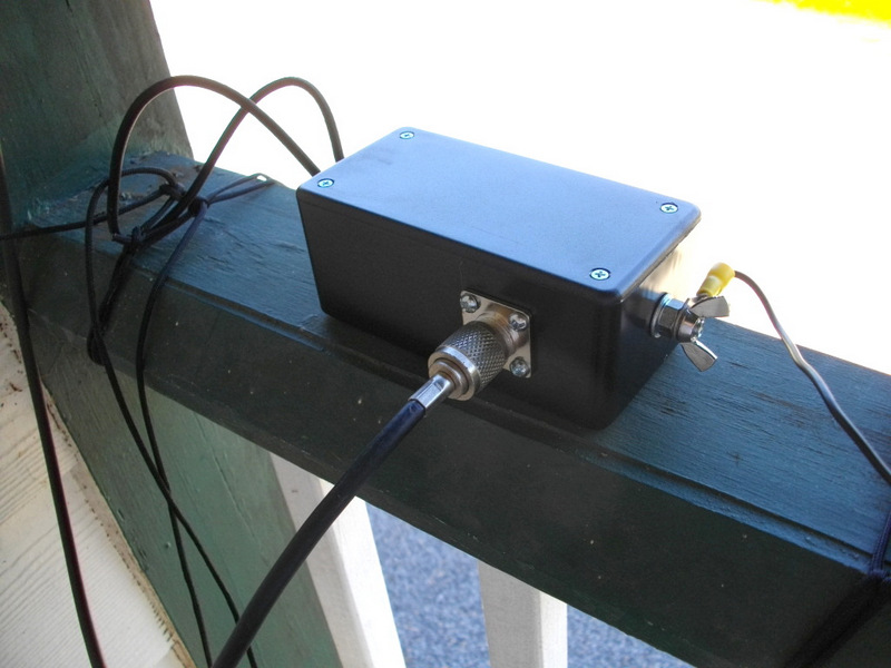 Note the bungee cord in the back. It allows for strain relief when this antenna is mounted over a tree limb.