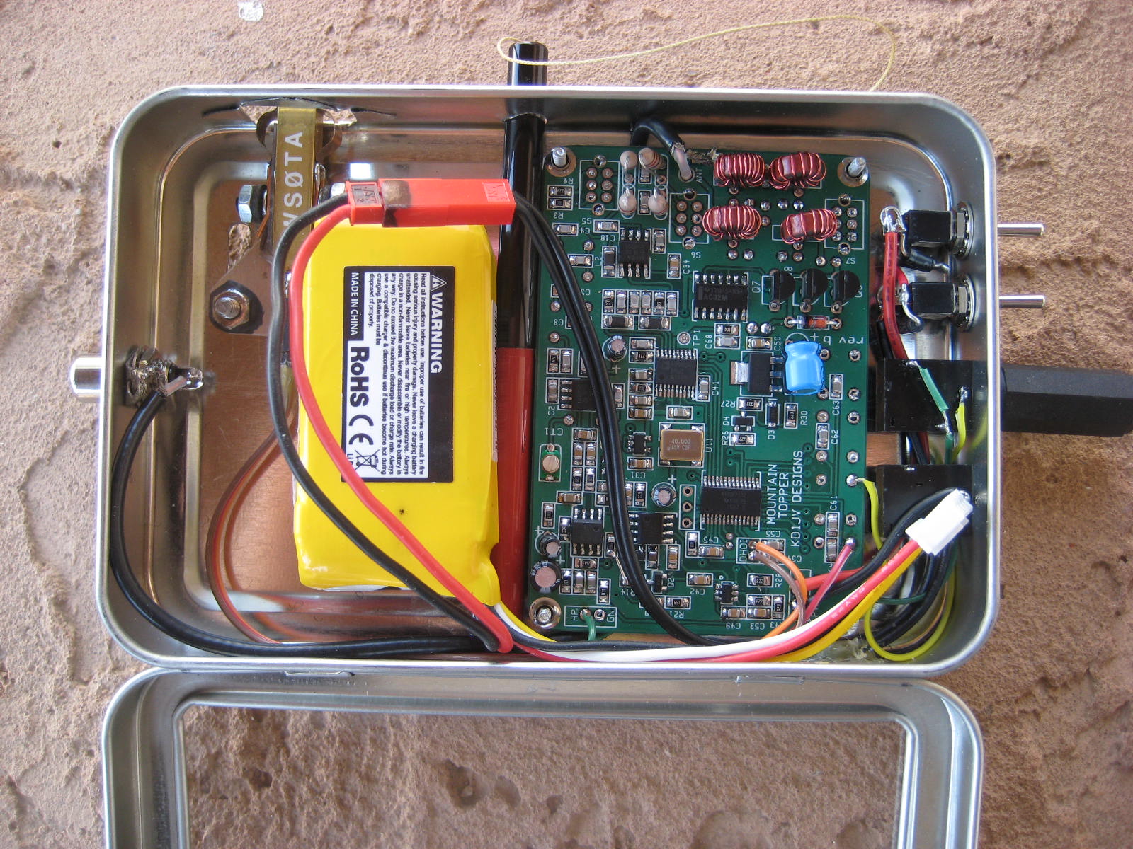 I had a normal size day pack filled to brim with redundant equipment, two radios (ATS-4B, MTR), two antennas (vertical, EFHW), you get the picture, redundant but not a huge load. I will defend some of the redundancy in that I have limited time and don't want to miss an opportunity to activate a summit because of some equipment failure. Fred shows up with basically a camal back water pack that has a front pocket on it. A small carbon fiber pole that collapses down to 21" and extends to 21 feet, a resonant antenna and a home brew enclosure for his MTR that contains a key, power supply, logging pen and serves as an operating desk to log QSO's with. Fred's total set up is around 1.5 lbs. The MTR Board is designed fit in an Altoids tin to give a perspective on the size of the enclosure.
