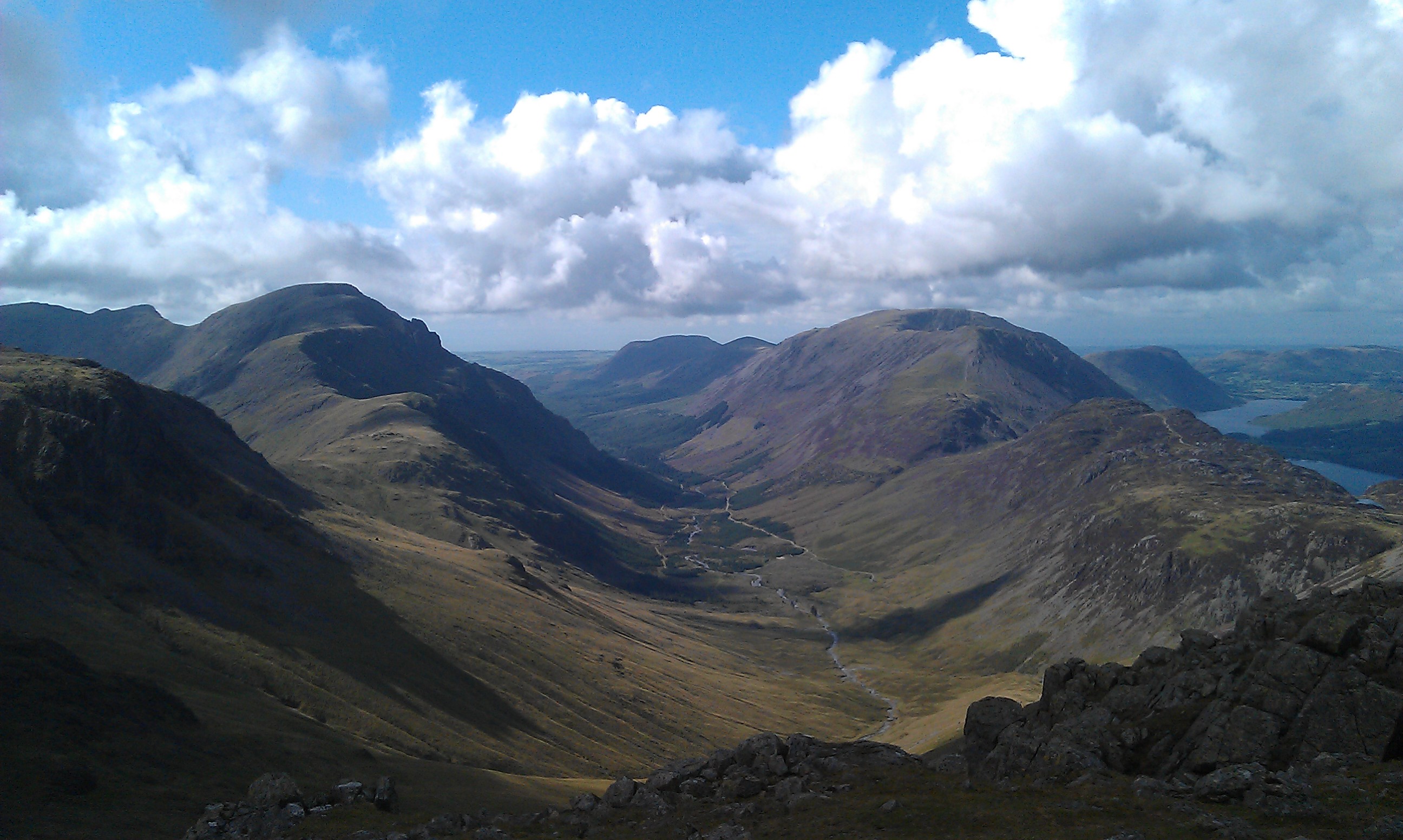 The photo was taken from the Summit of Green Gable which ended up being the second to last activation. The clouds came in as did the rain and so I made my way down to the valley floor and had a 6 mile walk back to the car which was parked at the base of the small fell at the front of the horseshoe in the middle of the picture. Crummock and Buttermere are the lakes on the right and Ennerdale lake is hidden round the back of Pillar on the left hand side. The western lakes are not as popular as the central lakes (Derwent, Windemere etc) and even though its only a few miles from a few small towns there was hardly a sole there.