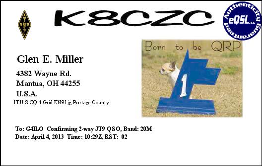 In another direction I worked PJ2MI – a familiar callsign. Checking my log we first worked in 2003 using PSK63 – quite an achievement as I would have been using my K2 and 4W output. More recently I have worked Jose using PSK31 and JT65A. On 20m I worked K8CZC who from the look of his eQSL would have been using low power (QRP).