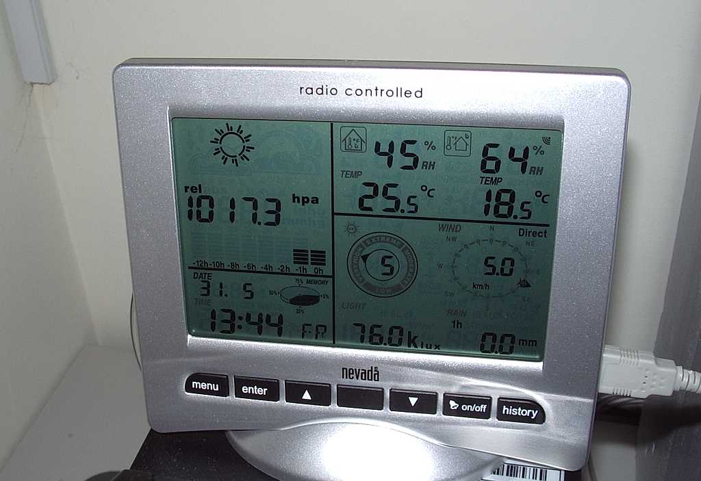 There were no problems receiving the weather station on the control panel sitting on the shack PC 10m away. This Nevada weather station transmits on 868MHz so no interference from or to 70cm amateur transmissions. No problems with the software either, not with EasyWeather nor with Cumulus which is what I will be using.