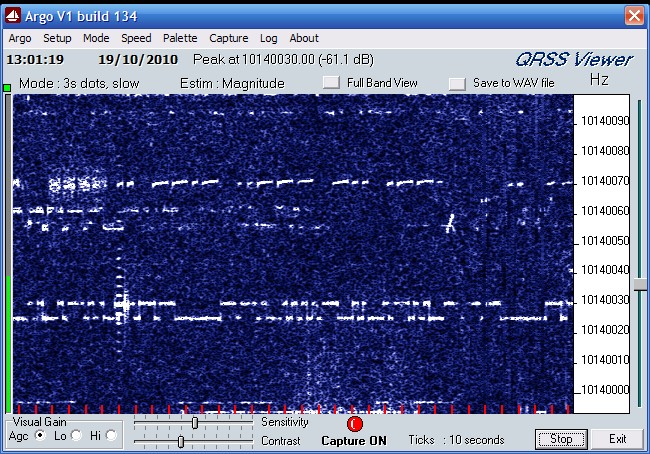 My 30m QRSS beacon transmitter is working very well. It has been on the air for more than a day now and has been received in Italy, Belgium, Holland and the UK. This is a 50 milliwatt signal being radiated by a magnetic loop antenna in the attic! Isn’t QRP amazing?