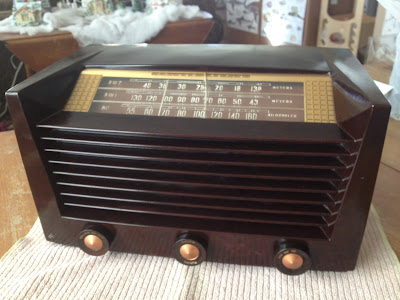 What prompted me to bid on this particular radio was the inclusion of two shortwave bands in addition to the typical AM broadcast band. The dials are marked off in meters which also appealed to the ham radio side of my interests.