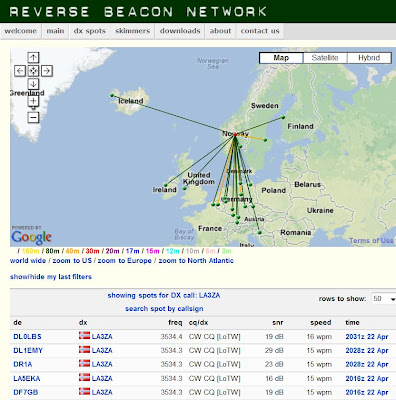 It is also amazing to look at the reverse beacon network and watch your own CQ being reported almost in real time from various Software Defined Receivers with CW Skimmers. Below is the result of the two CQs I have sent these two last days.