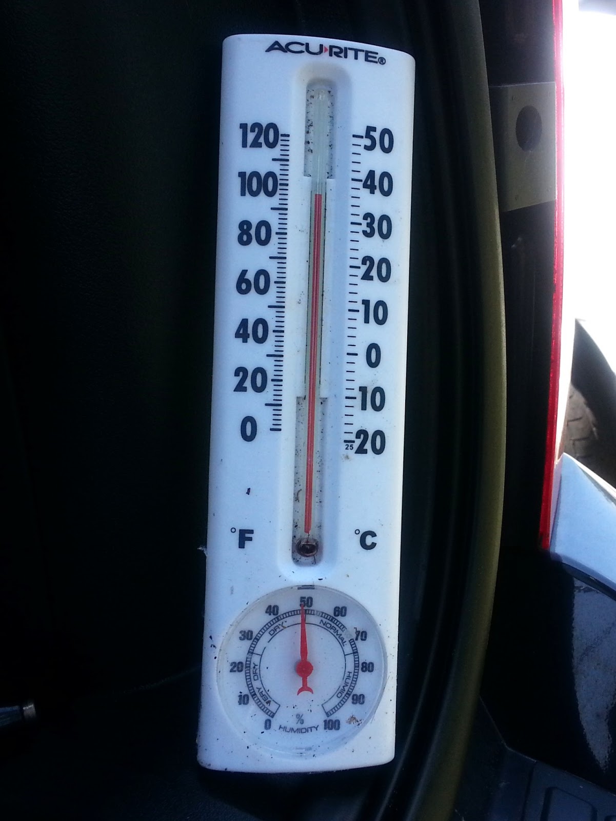 So after I put everything away, as far as the station goes, I went and fetched the thermometer from it’s shady spot. Here’s what it indicated:
