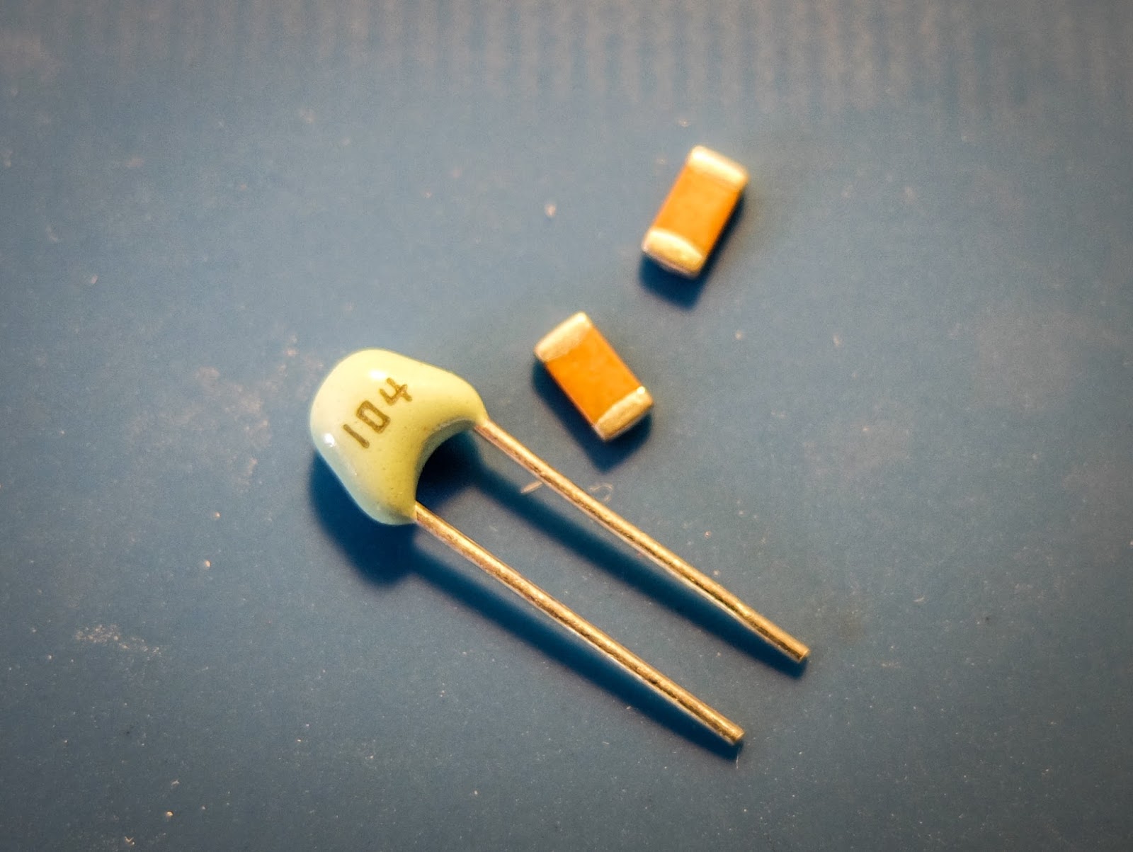 The kit includes both SMT caps and through hole caps. I tried to solder one of the SMTs but I didn't have the right kind of tweezers to hold it in position for soldering so I used the through hole caps.
