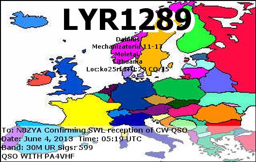This card came from Lithuania and I know I was getting into this part of the world at the time. Last night I worked a very familiar LY5O. During my later night contacts, I worked OK1PL in the Czech Republic.
