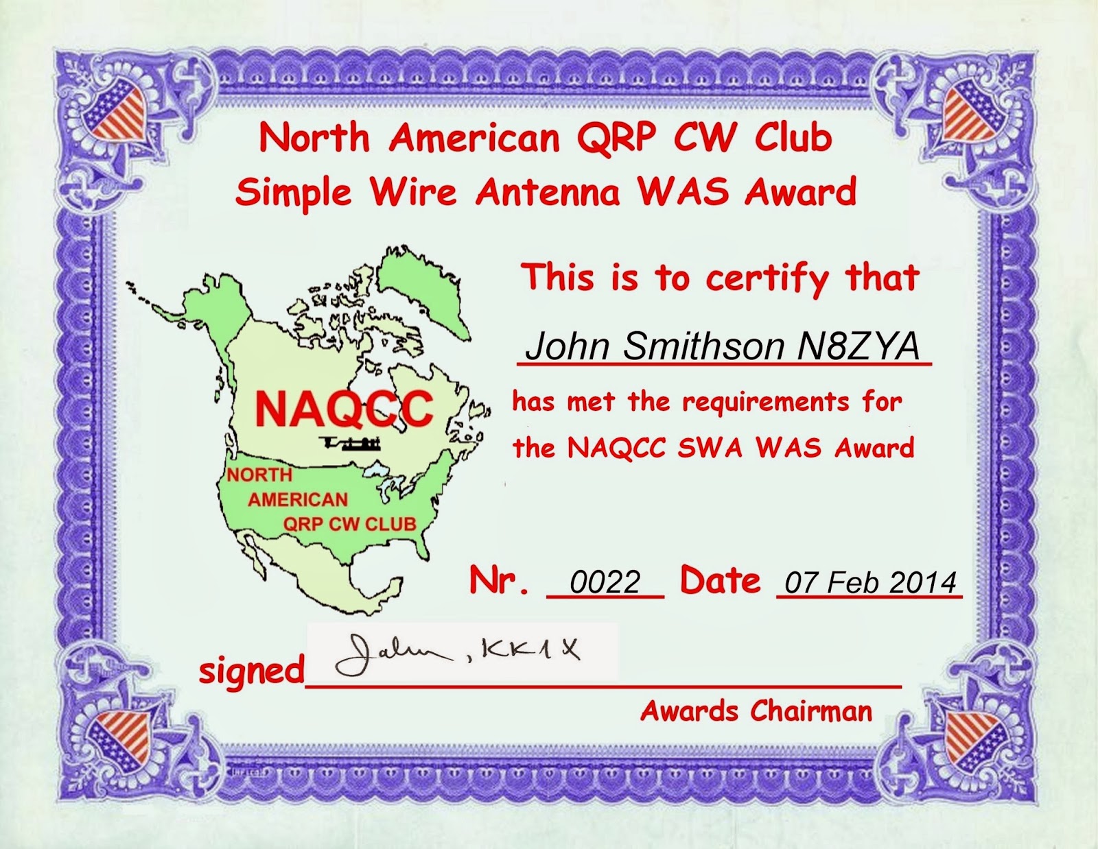 The North American QRP CW Club has always been my favorite organization. I hope my addition of the NAQCC DXCC QRP Award will be an inspiration to those of our members who think working over a 100 different countries with five watts, or less, of power and “simple wire antennas” is impossible.