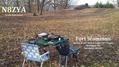 I worked seventeen stations with this “Special Event Station” of the West Virginia Chapter of the NAQCC club on Wednesday afternoon and sent an E-QSL Card to those who worked me. Fort Scammon isn’t well known to those living in my city, but during the Civil War, this artillery site was critical to controlling the river traffic on both the Kanawha and the Elk Rivers.