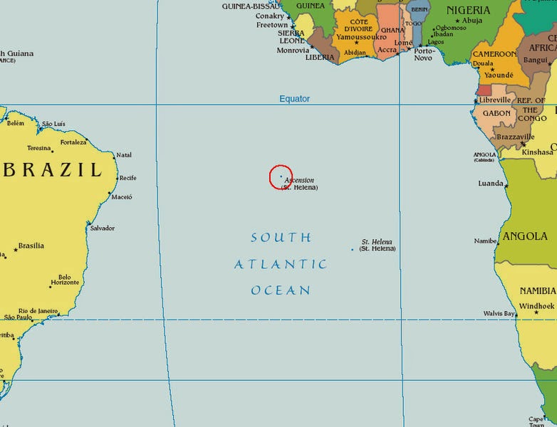 Ascension Island is literally”in the middle of nowhere” between South America and Africa in the Atlantic Ocean. It’s primarily a communications hub for several countries and was a relay station for the BBC in it’s heyday. St Helena is in this general area and the place Napoleon spent his last days in exile.
