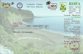 Got my verification QSL card from (R0FA) Sakhalin Island today! Should you take the time to read a few entries back; this island is shared by both Japan and Russia. I was able to work him with 3 watts and an indoor random wire antenna. This station was just above the mainland of Japan and a little East of China. When I spotted him on the cluster, he realized that I was “QRP” and stopped the “pile up” to say a special “hello”. You won’t find many willing to do this…..my reward for a great contact!