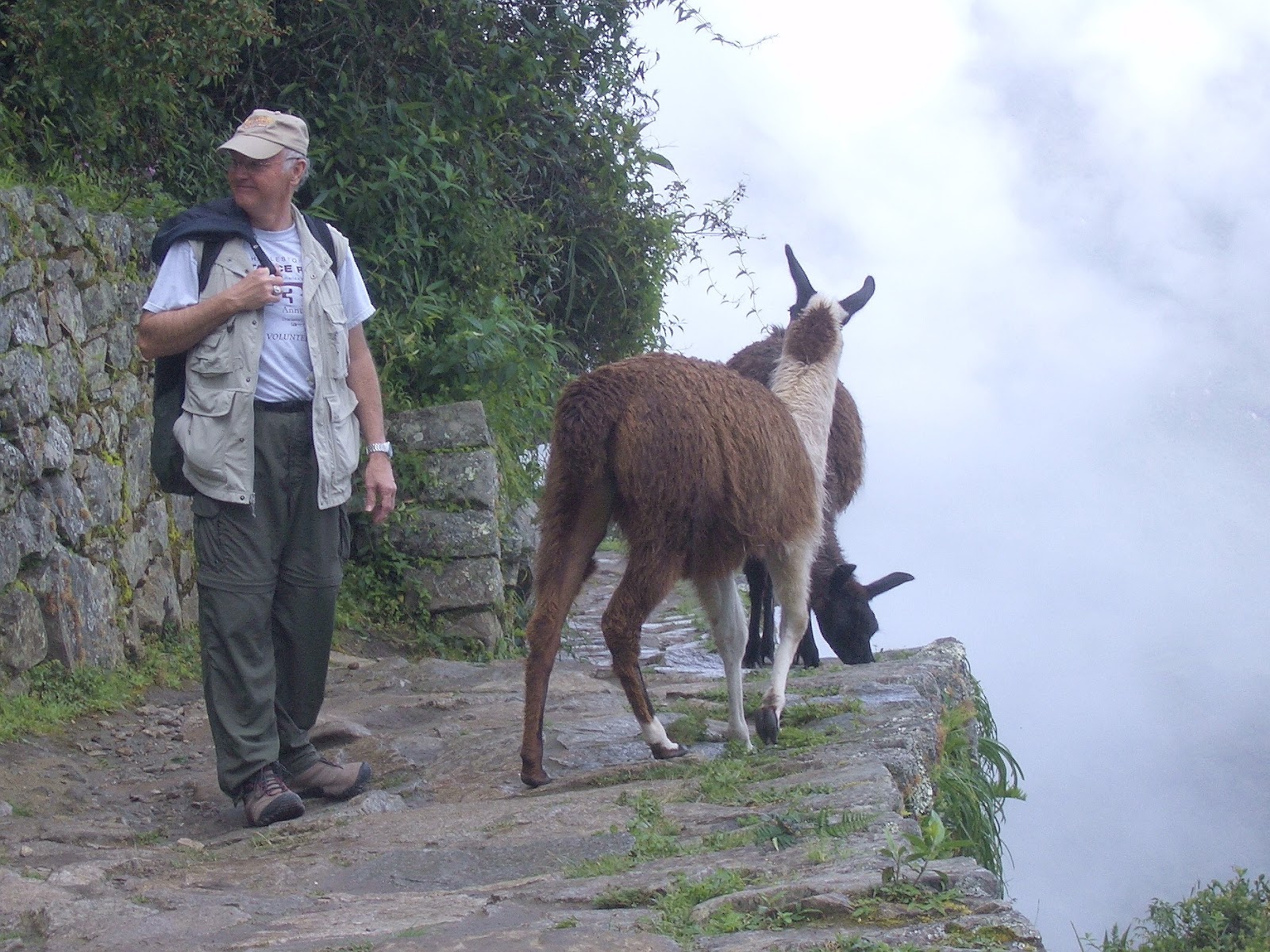 What do you do when you find yourself on the edge of the Inca Trail with a few Llamas between you and a potentially fatal precipice of several hundred feet? You just stand still and wait for them to move along. They can spit in your eye if provoked; and walking blindly around here can be the end of you.