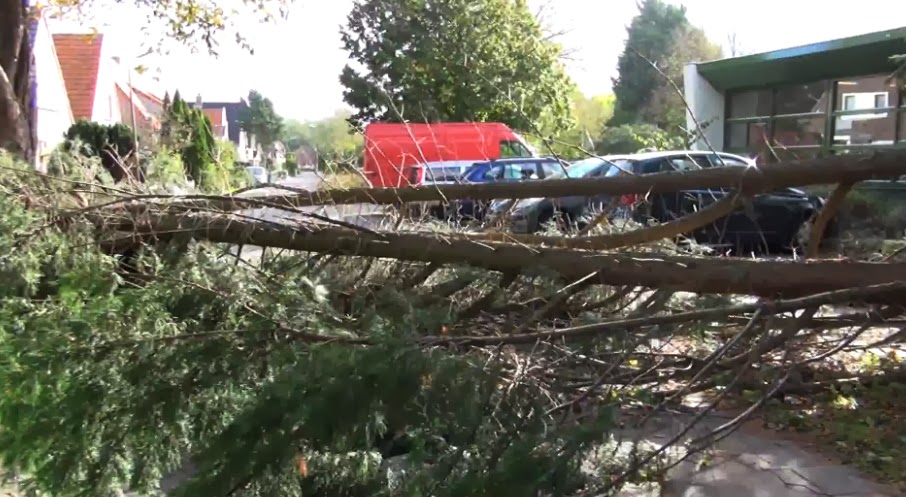 Update: The storm is over. Wind gusts up to 119km/h at our location. We had no real problems here. One roof was destroyed and a tree was down, that's all.