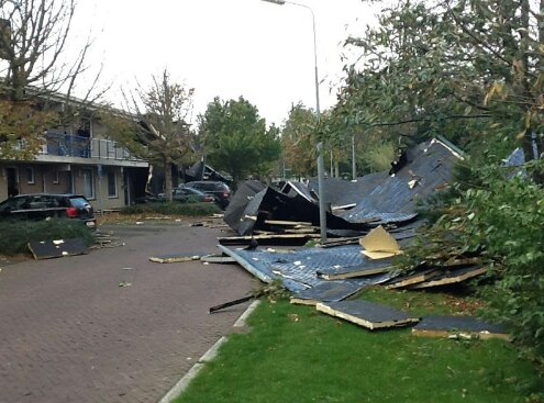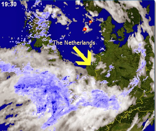 Update: The storm is over. Wind gusts up to 119km/h at our location. We had no real problems here. One roof was destroyed and a tree was down, that's all.