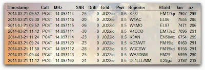 My daily routine, I start my day with CW on 14060 KHz. I listen for for activity. The last few days I worked OH9XX/P on 20m, I was using 5 watts. Yesterday UA2FAI, I was using 1 watt. Also worked RG3R with 1 watt but with JT9 on 10m. Of course all with the Yaesu FT817 and my end fed wire. Today we have nice spring weather. Sunny but a little cold about 1,5 C now at the moment. Yesterday also good results with WSPR into the USA with 500mW on 10m.