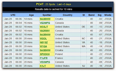 I was early this morning so I tuned to 40m (7076 KHz) JT65A frequency. I worked KJ4DHF Tim from Virginia. He was -16dB here and he gave me -13dB. My power was 25 watts. Only one qso because I had breakfast with my children. Just a short moment for taking advantage of the grey zone.