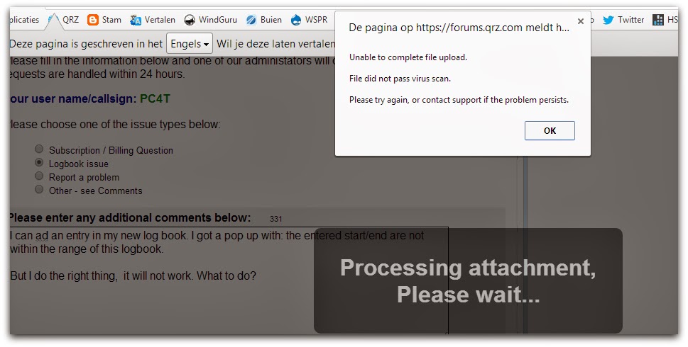 There is a bug in the new QRZ.com logbook. I cannot add an entry in the log, so a pop up message appear that told me something is wrong. I sent QRZ.com an email and they will try to fix the problem.