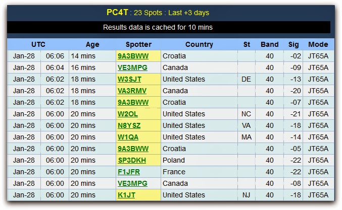 I was early this morning so I tuned to 40m (7076 KHz) JT65A frequency. I worked KJ4DHF Tim from Virginia. He was -16dB here and he gave me -13dB. My power was 25 watts. Only one qso because I had breakfast with my children. Just a short moment for taking advantage of the grey zone.