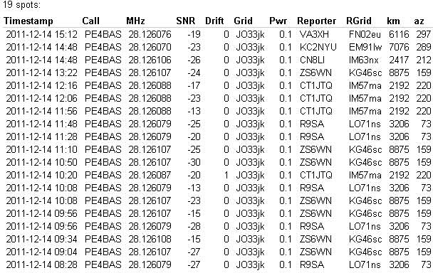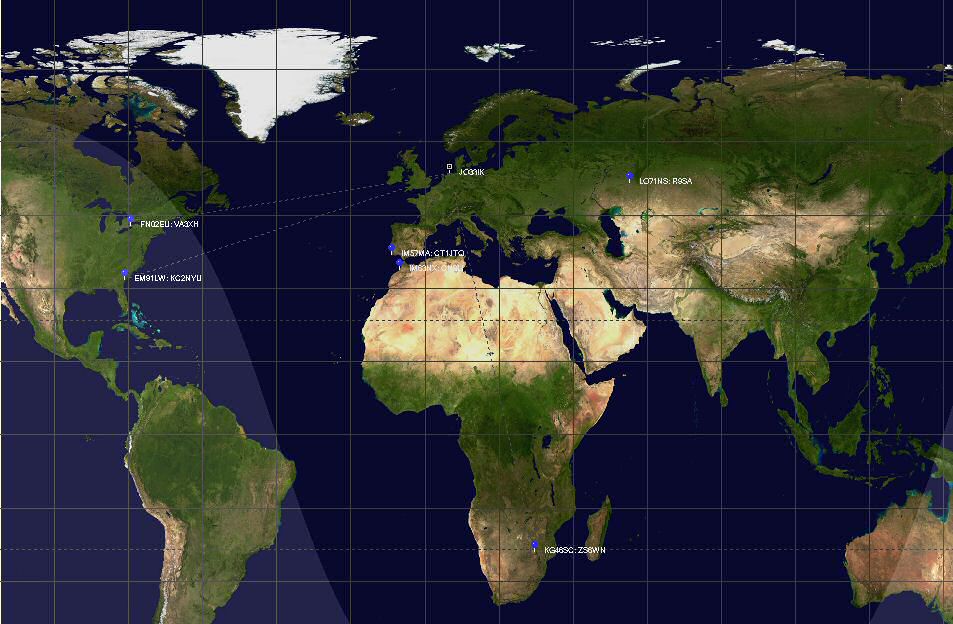 Below all the spots that were made of my 100mW transmission today.
