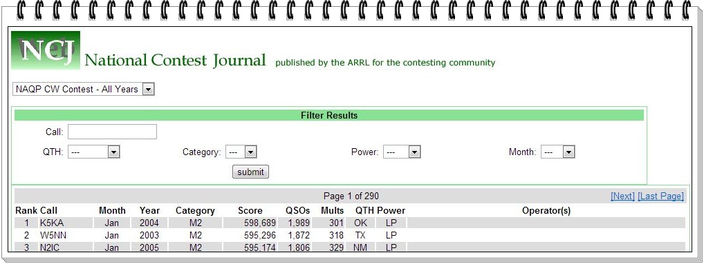 In the meantime, the crew over at the National Contest Journal developed the North American QSO Party (NAQP) database and I can take a ‘big picture’ snapshot in addition to comparing month statistics.