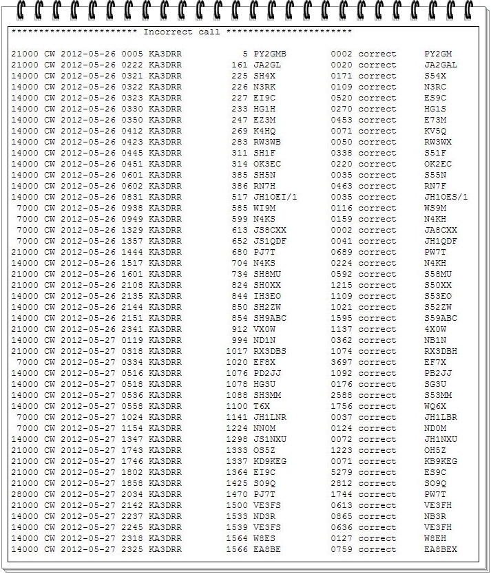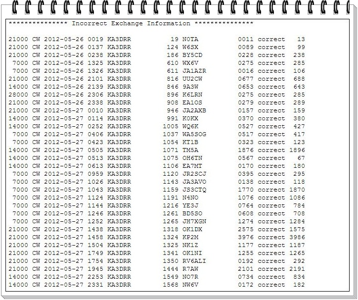 Likewise, there is perspective, as I claimed (n = 1,588 Qs) and my final was (n = 1,506 Qs) or 2.9% of calls copied incorrectly (n = 46) and 2.0% incorrect exchange information (n = 32) with 0.3% not in the log (n = 4).