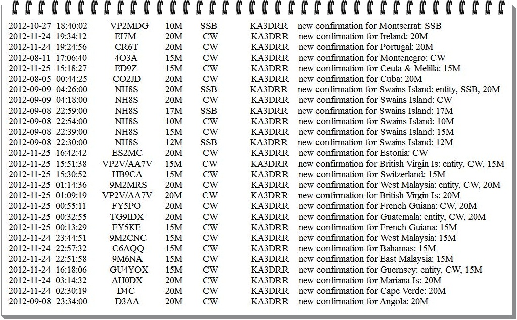 In the meantime, between my vicarious thrill of listening to Paolo, PV8DX an accomplished DXer and RadioSport operator at PV8AA; a significant load of LoTW credits were downloaded into my log. The Swains Island DXpedition confirmed on respective band slots in addition to 4O3A, D4C, and D3AA.