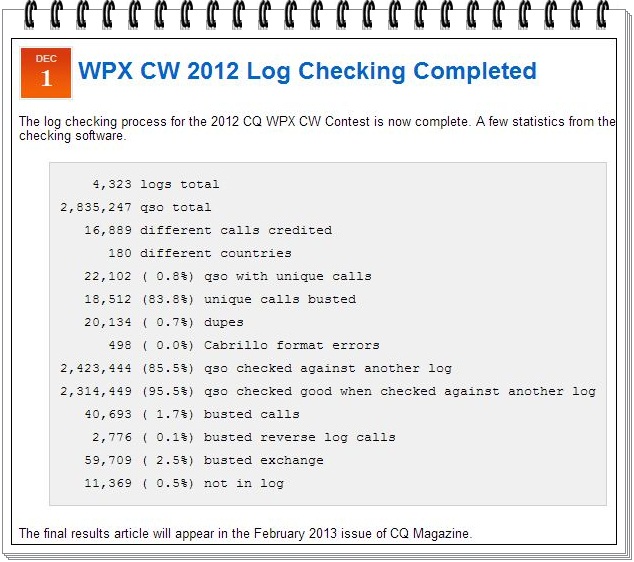 2012 CQ WPX CW Log Check Report