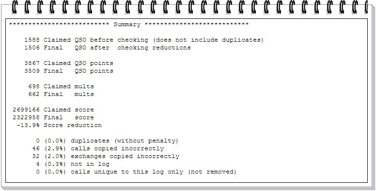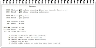 Let’s start with my score summary as I took a 13.9% (n = 376,208) score reduction as a result of not in log, incorrect call, and incorrect exchange information. I mentioned in my previous post there is cause and effect when the score is officially adjudicated.