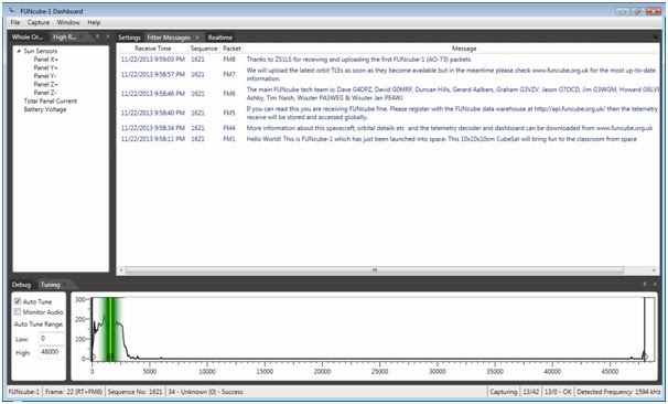 Receiving telemetry from the new Funcube-1 (AO-73) satellite