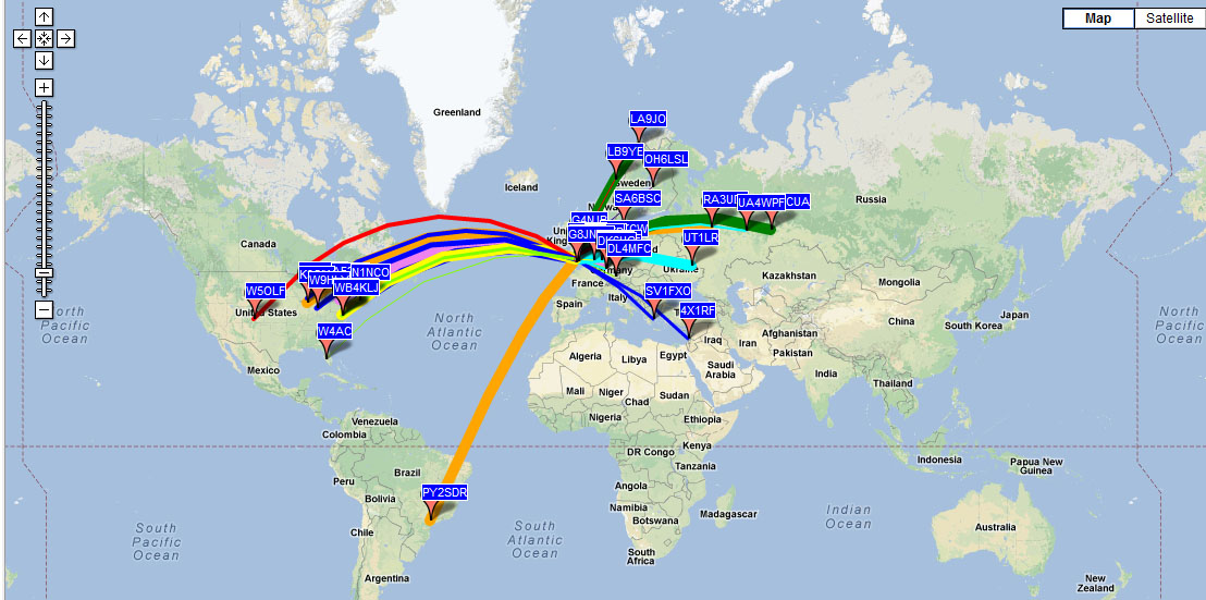 Also, many periods went by without my signals being spotted – very different to yesterday. I did wonder if the aerial had a problem, but I am certain it was just slightly poorer conditions. The afternoon did improve slightly with a few reports from the USA, with KE7A being the furthest west.