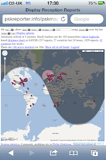 Mike M0PRL is interested in visualising propagation data to look for openings and he kindly put together a fascinating time lapse sequence of the stations that my JT65A receiver hears over a period of 24 hours (though I confess it’s usually switched off overnight, as you will see). Congratulations Mike, this is a really great visualisation!