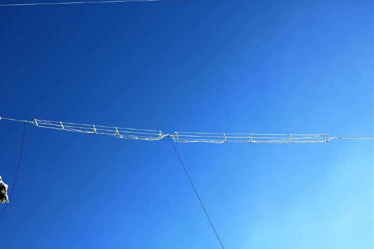 | 630m top-loaded 'T' (and multiband HF dipole) at VA7MM...100' vertical x 50' tophat. |