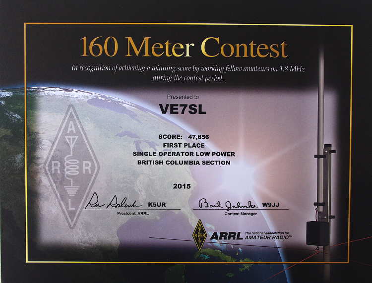 Recent mail has brought two nice surprises. As I am preparing for this weekend's ARRL 160m CW affair, a certificate from the ARRL arrived ... from last year's 160m CW Contest!