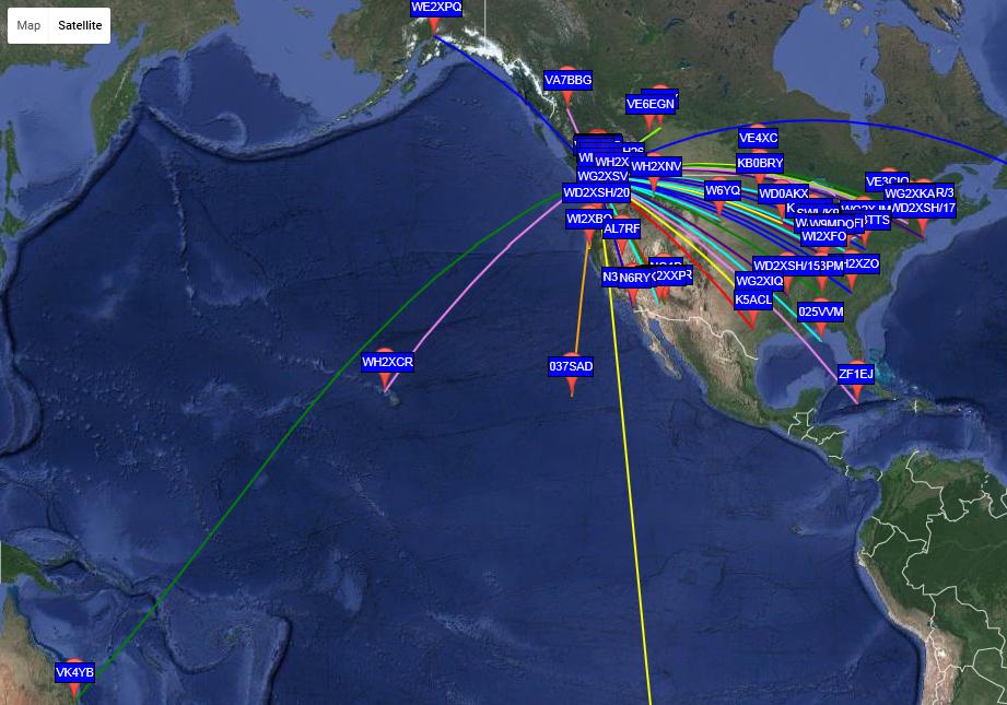 Noting the increased east-west favorability over the past few nights, Phil and I decided to give it a shot and were delighted to cover the 2200 mile / 3500km path while Murphy was sleeping and not messing with propagation.