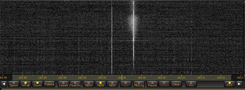 As daylight approached the transmitter site in Germany, the 183kHz signal provided a good visual example of 'dawn-enhancement', with the signal showing a dramatic flare on the waterfall indicating its build-up in strength.
